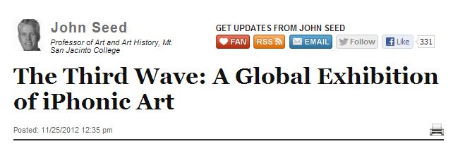 John Seed, professor of art and art history at Mt. San Jacinto College in Southern California, and juror on the THE THIRD WAVE Global Exhibition of iPhonic Art has written an article on the Huffington Post about the exhibition and selected my photo Collapsed among a selection of nine photos of the show.