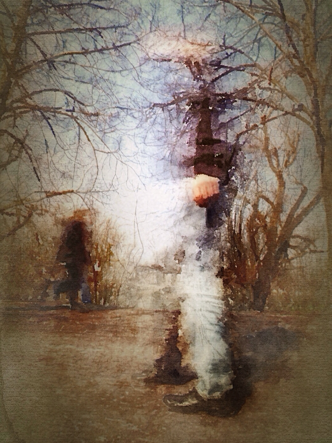 The app used to shot the image was Slow Shutter Cam, cropping and adjustments were done using Snapseed, further editing was done using Waterlogue, Decim8, Image Blender, DistressedFX and Vintage Scene.