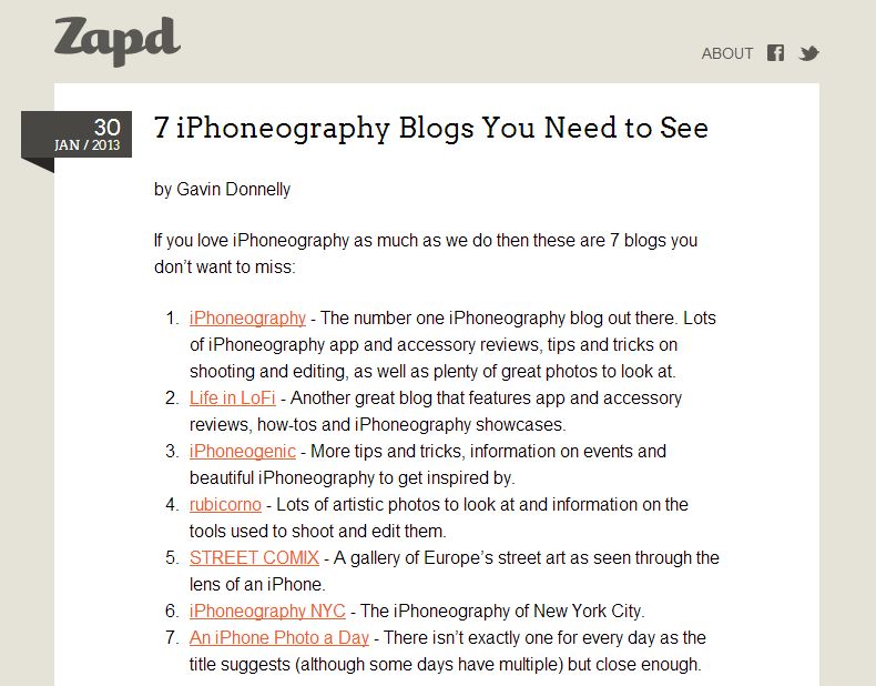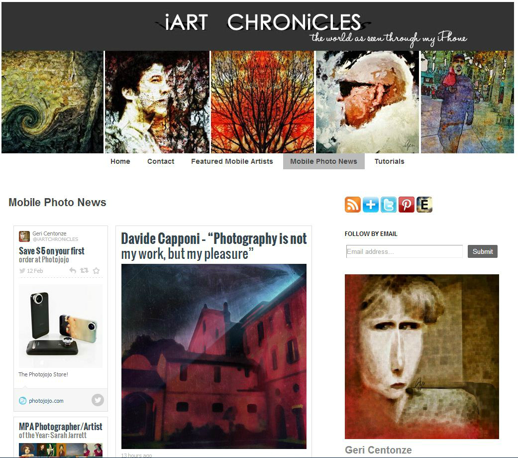 Fellow iPhoneographer Geri Centonze, author of the beautiful and comprehensive blog on Mobile Photography iArt Chronicles has dedicated to my photos a feature that you can read here.