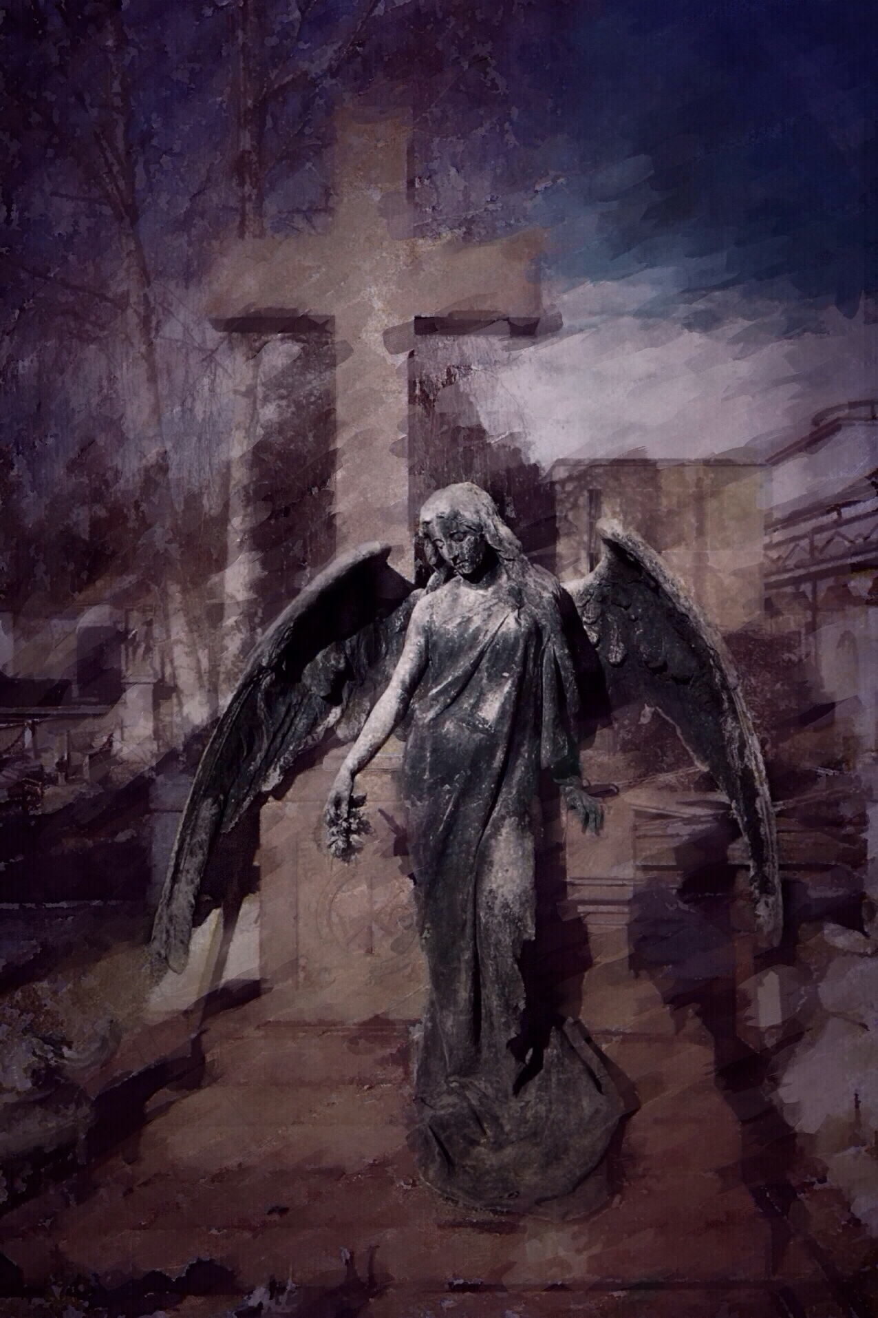 This is a funerary monument in the cemetery of Torino. This was shot with my iPhone 4s .